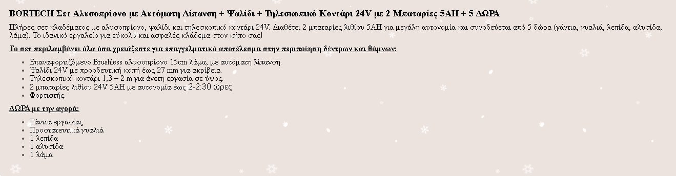• Κωδικός προϊόντος: BORTECH Σετ Αλυσοπρίονο με Αυτόματη Λίπανση
